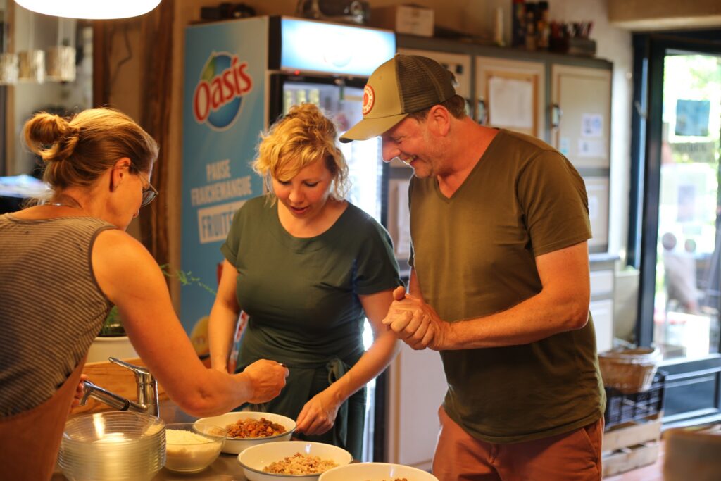 La Jaurie is een self-made boerderijcamping met middeleeuwse gebouwen, ruime plaatsen en comfortabele gîtes, ideaal voor een gezinsvakantie. Op La Jaurie ontvangen Marcel & Madelinde al 15 jaar ontzettend veel leuke mensen op vakantie. Zij komen om uit te rusten, lekker vers te eten en om samen creatieve en leerzame activiteiten in de natuur te ondernemen. Door jaren ervaring in het begeleiden van groepen op La Jaurie, in het speciaal onderwijs en met een masterdiploma in interculturele communicatie op zak, begeleidt Madelinde de ateliers met veel integriteit en vooral plezier. Je ontdekt de lokale keuken tijdens je verblijf. De maaltijden zijn gemaakt met seizoensgroenten uit de groententuin, aangevuld met lokale producten. De keuken is geïnspireerd op de eeuwenoude eetcultuur in de Perigord-Limousin, maar wél met een modern sausje.