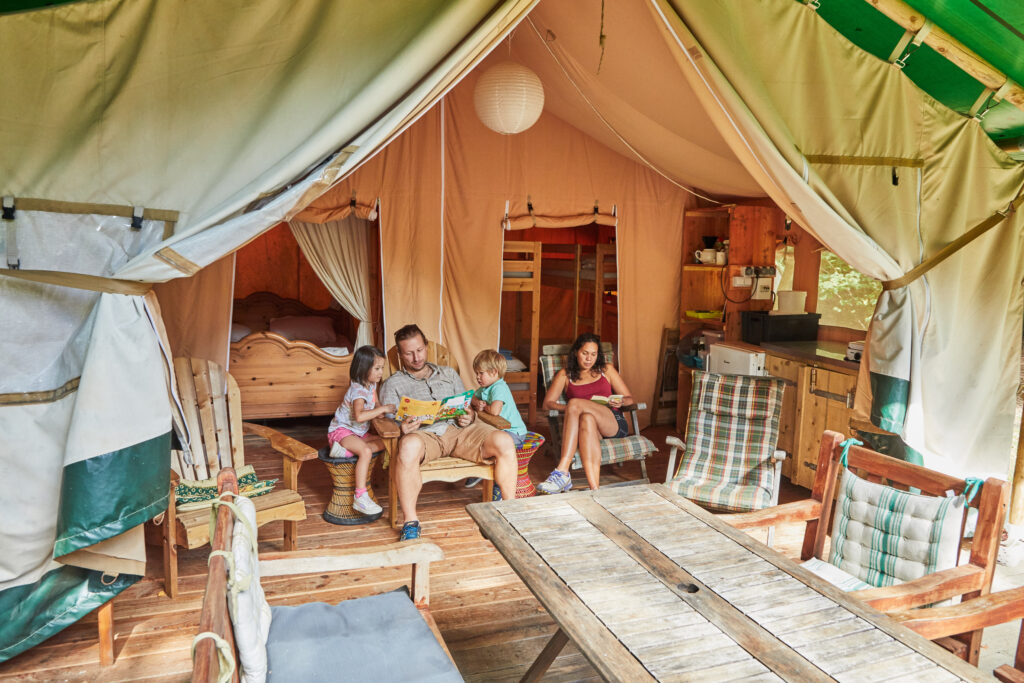 Op het terrein staan vier grote ingerichte safaritenten met lekkere bedden voor 6 personen. De tenten staan op prachtige plaatsen in het bos. Slaap je toch liever in een vakantiehuisje of stacaravan dan kijken we samen naar de mogelijkheden.